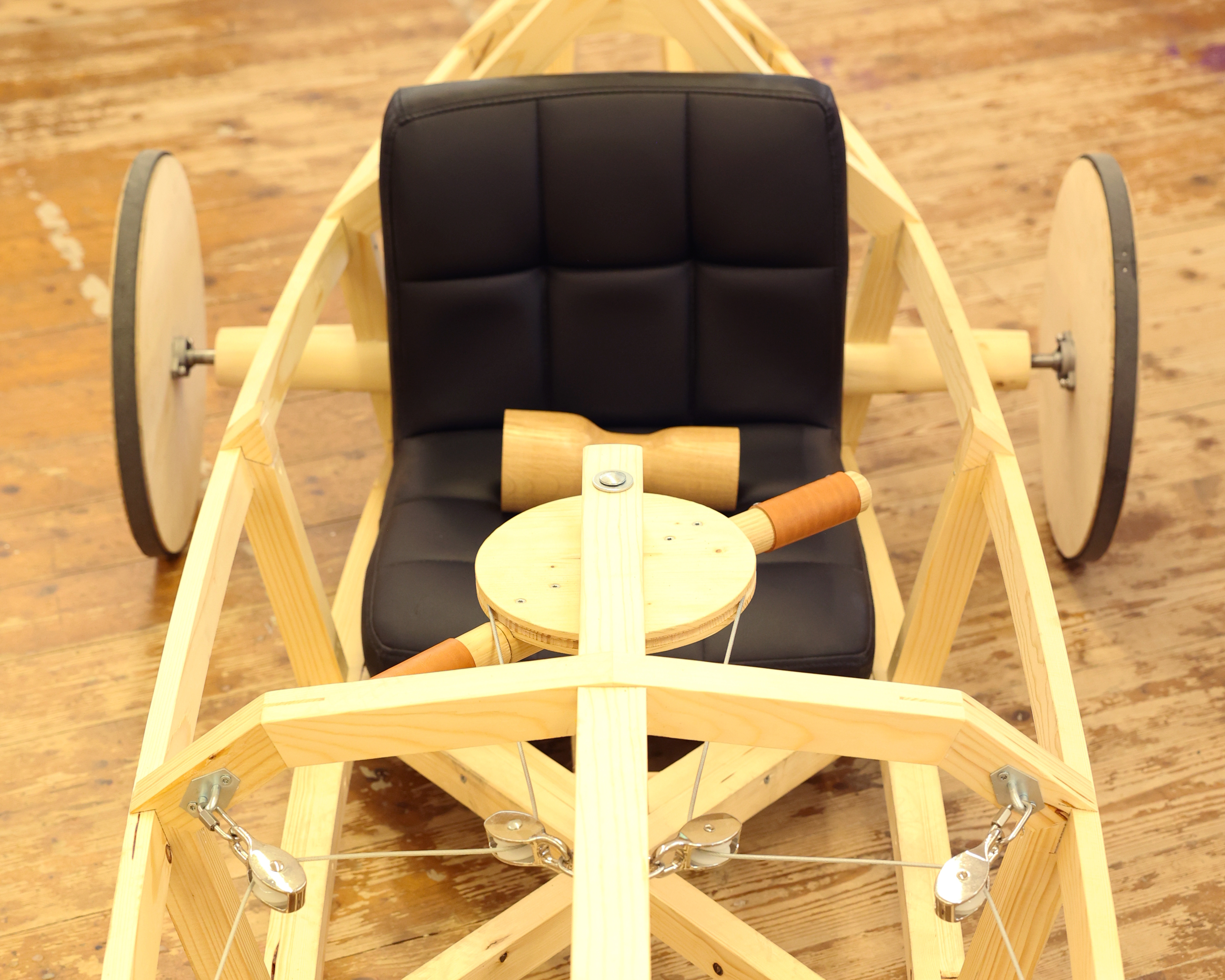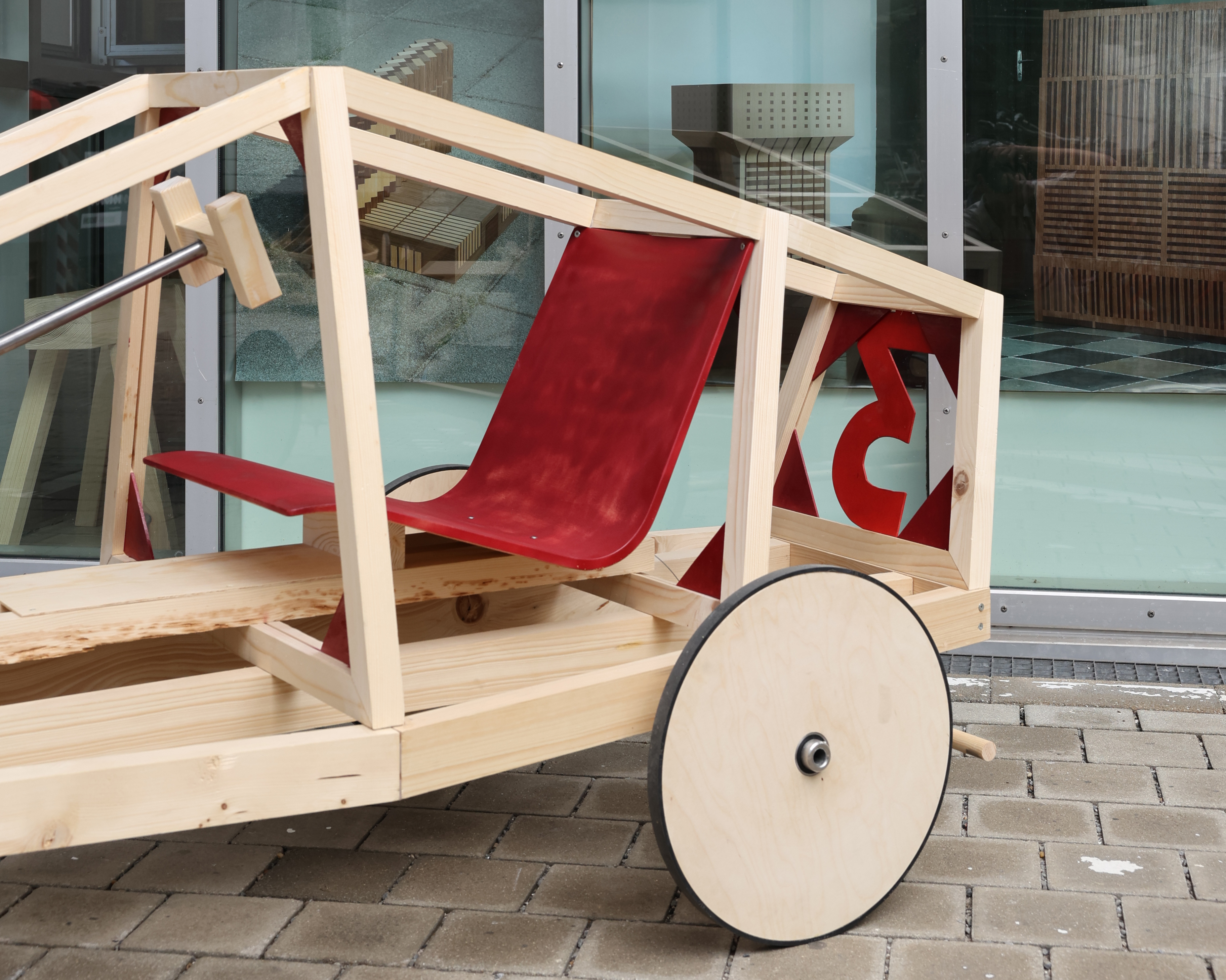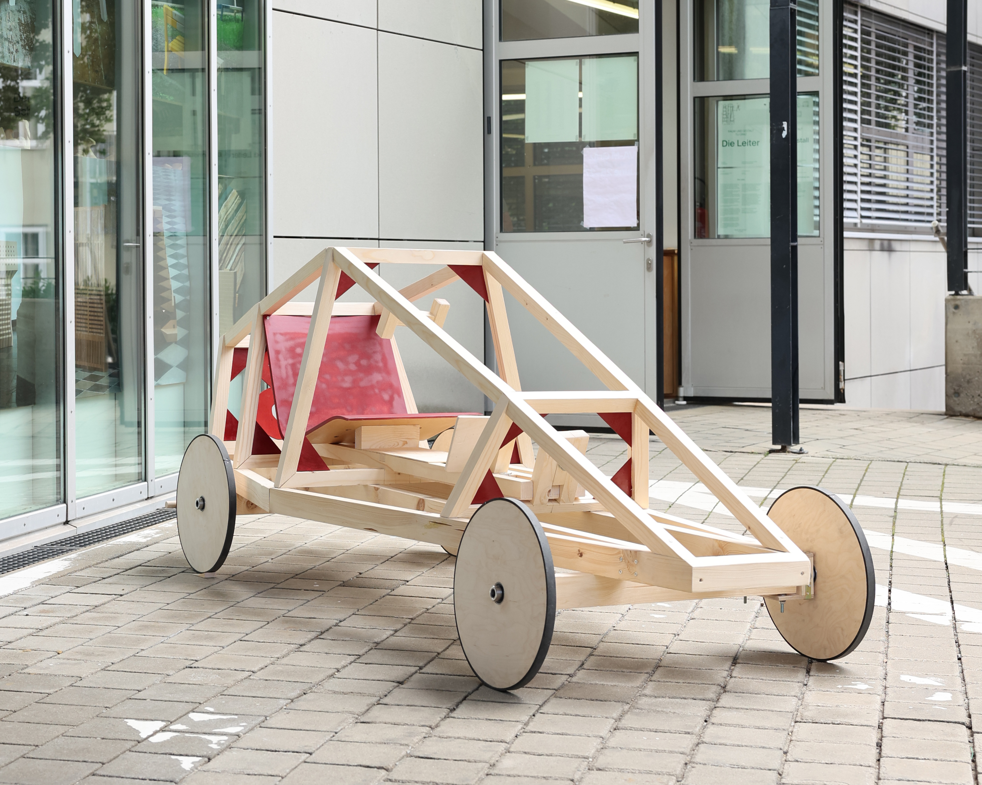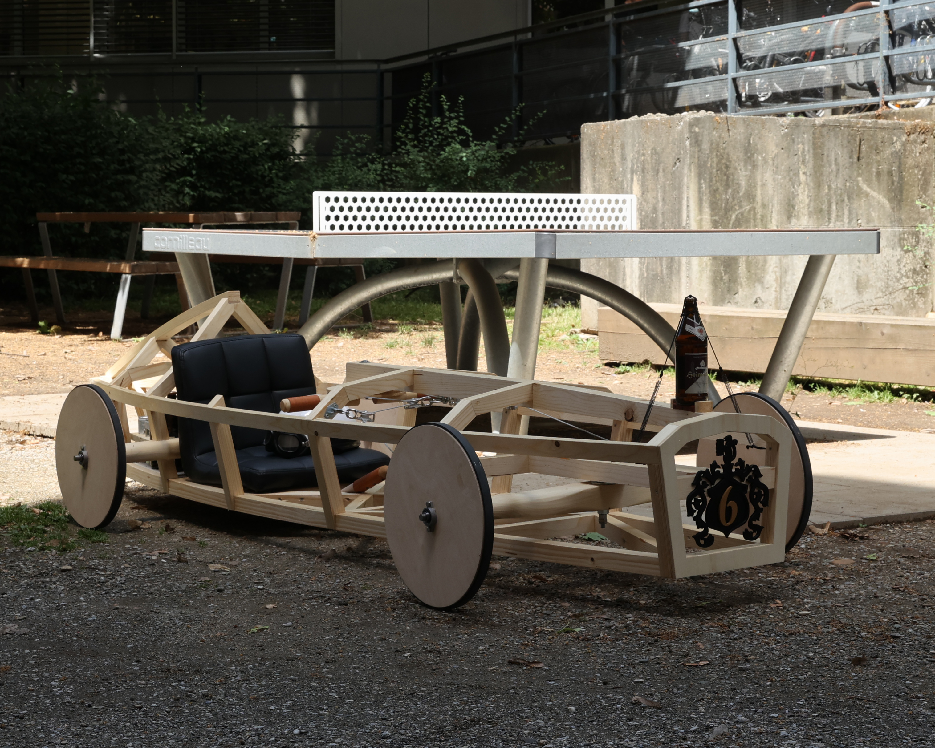 Wir konstruieren mit pragmatischen Überlegungen aber konstruktiver Logik die Radaufhängung, ein funktionierendes Lenksystem, eine effiziente Bremsmöglichkeit sowie die ergonomisch beste Sitzposition für den Piloten.