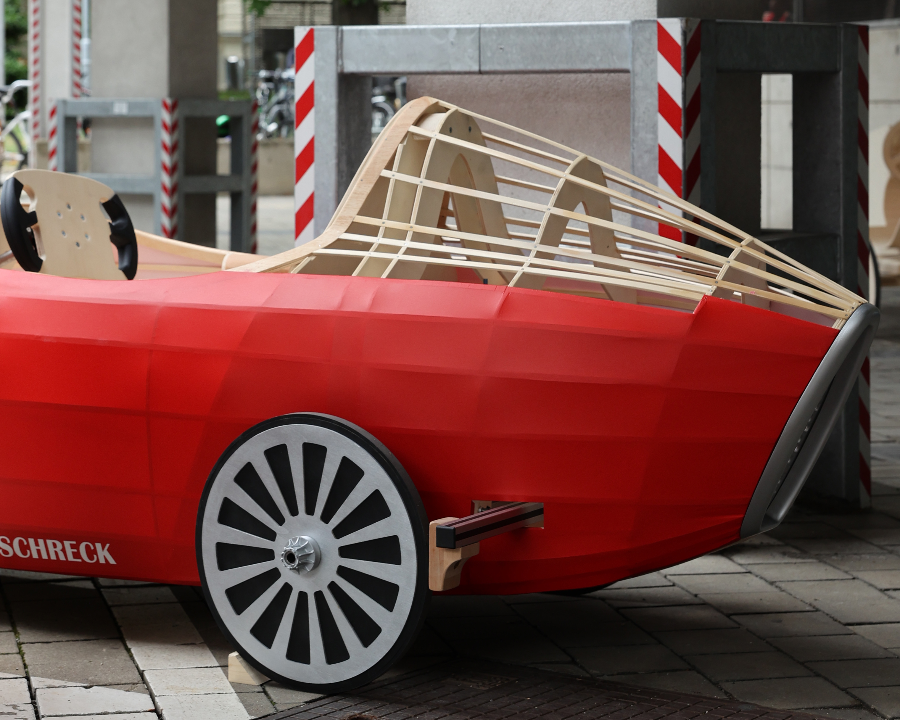 Wir entwickeln und fertigen eine stabile, robuste Struktur und ein leichtes, aerodynamisches Chassis. Die sich selbst tragende Konstruktion, deren Bauform elementar gedacht werden kann, wird mit Holzwerkstoffen ausgeführt.