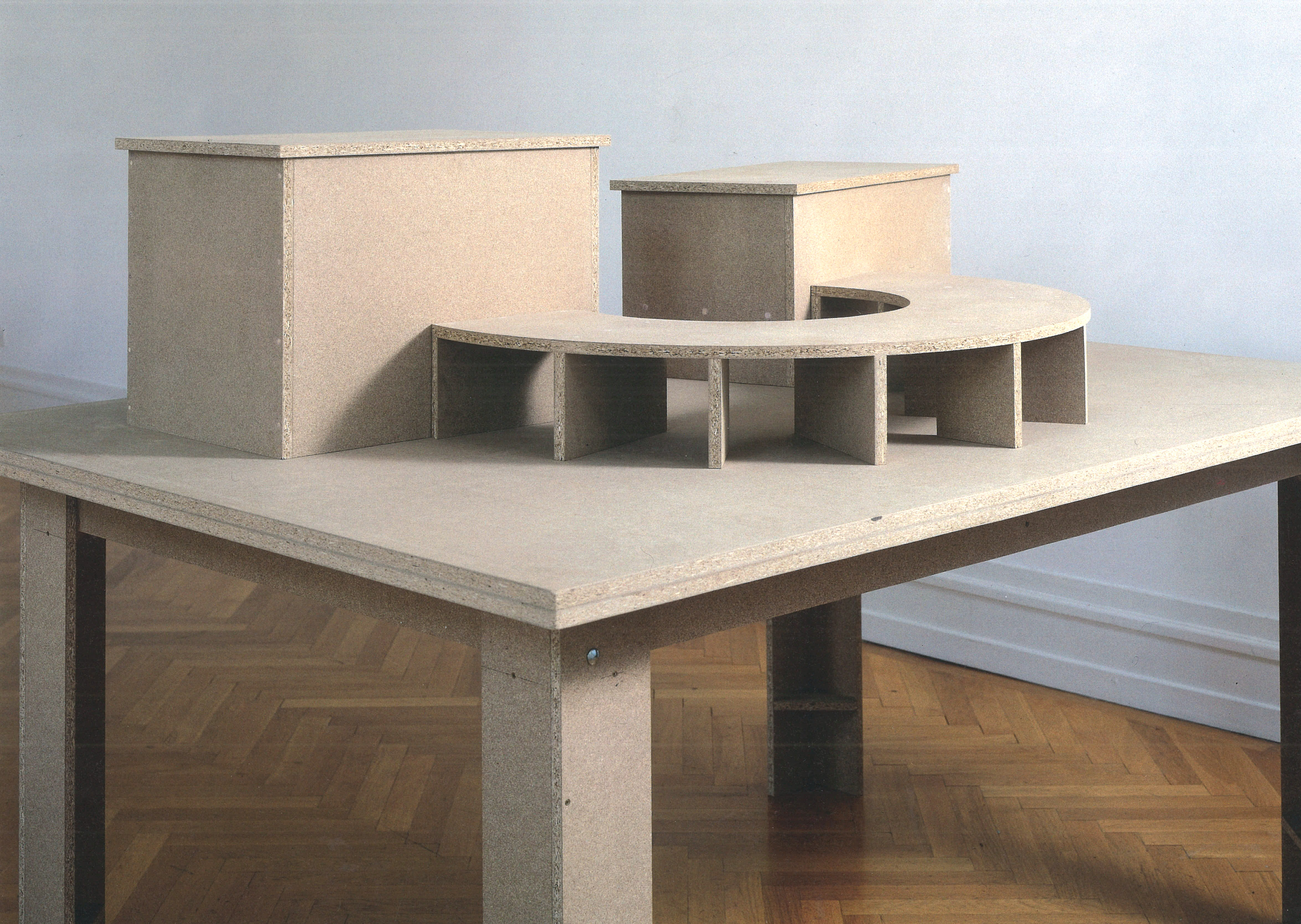 Bei der Arbeit stützen wir uns auf unsere Sehgewohnheiten und die Fähigkeiten unserer Hände. Zunächst mit Pinsel, Farbe und Acryl, später ausschließlich in der Holzwerkstatt. Das bedeutet Kosten für Holz und Leim, schont jedoch die Bildschirmzeit. So entstehen keine Modelle im klassischen Sinn. Das Gebaute ist das Bauwerk selbst, nicht die Verkleinerung von etwas anderem. Bauwerke in Lebensgröße.