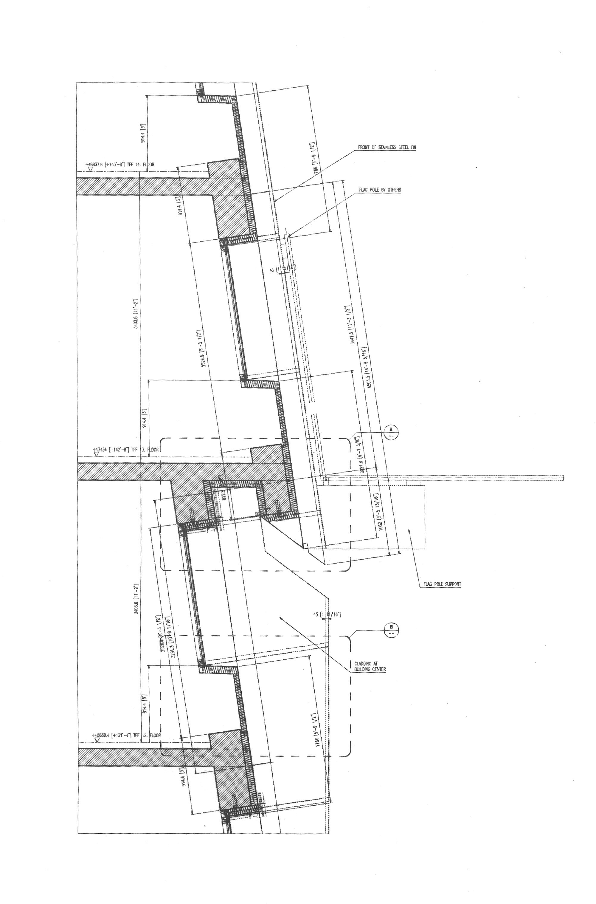 Nun fehlt nur noch der Fassadenschnitt. Als objektiv technisches Dokument erweitert er unser Projekt medial in die universelle Sprache des Bauens und deutet räumlich nun eine Tiefe an, die über die tatsächliche Tiefe der Fassade hinausgeht.