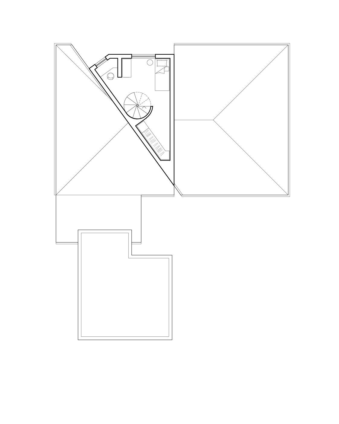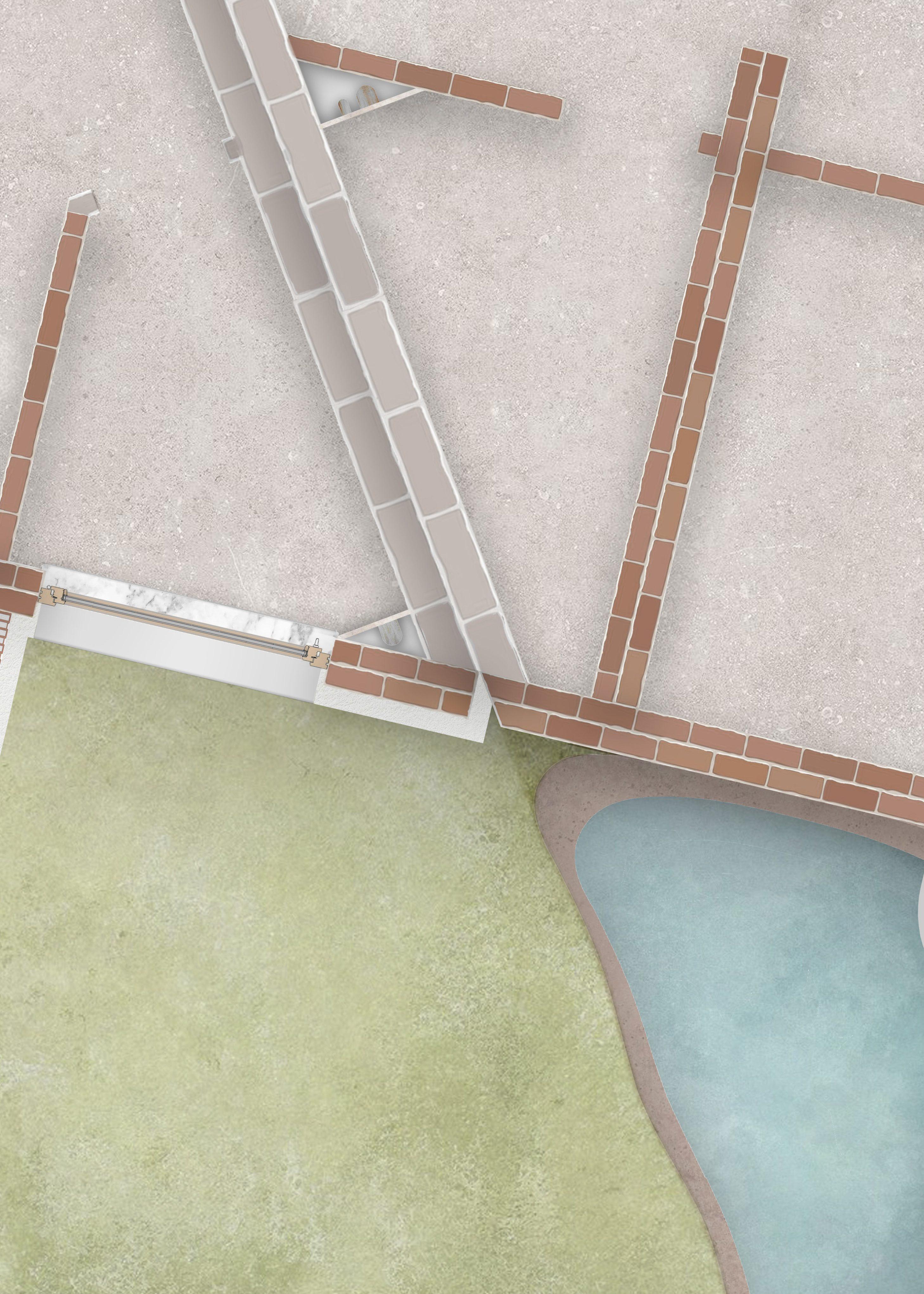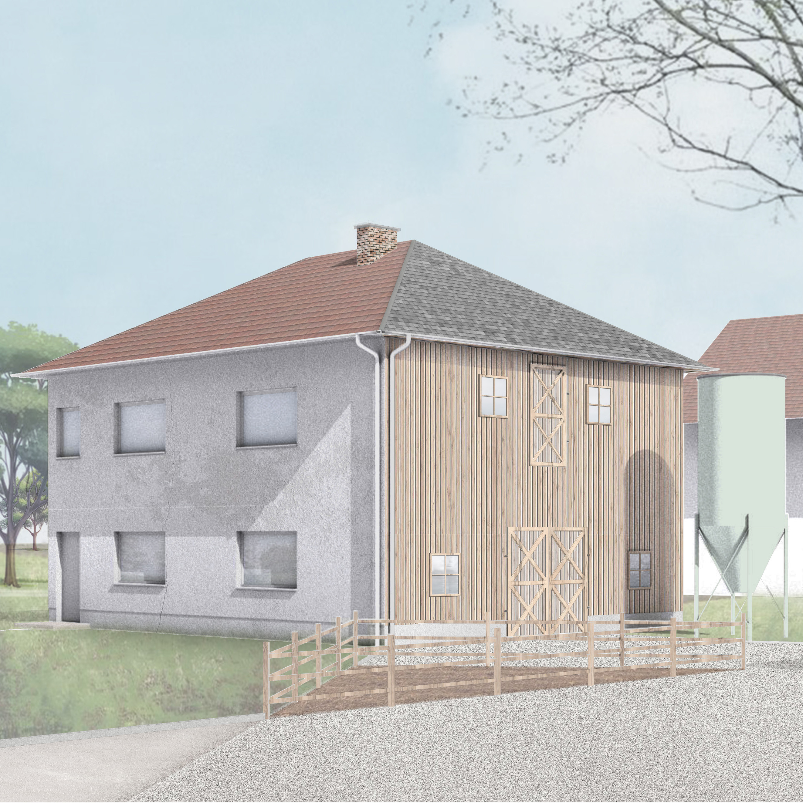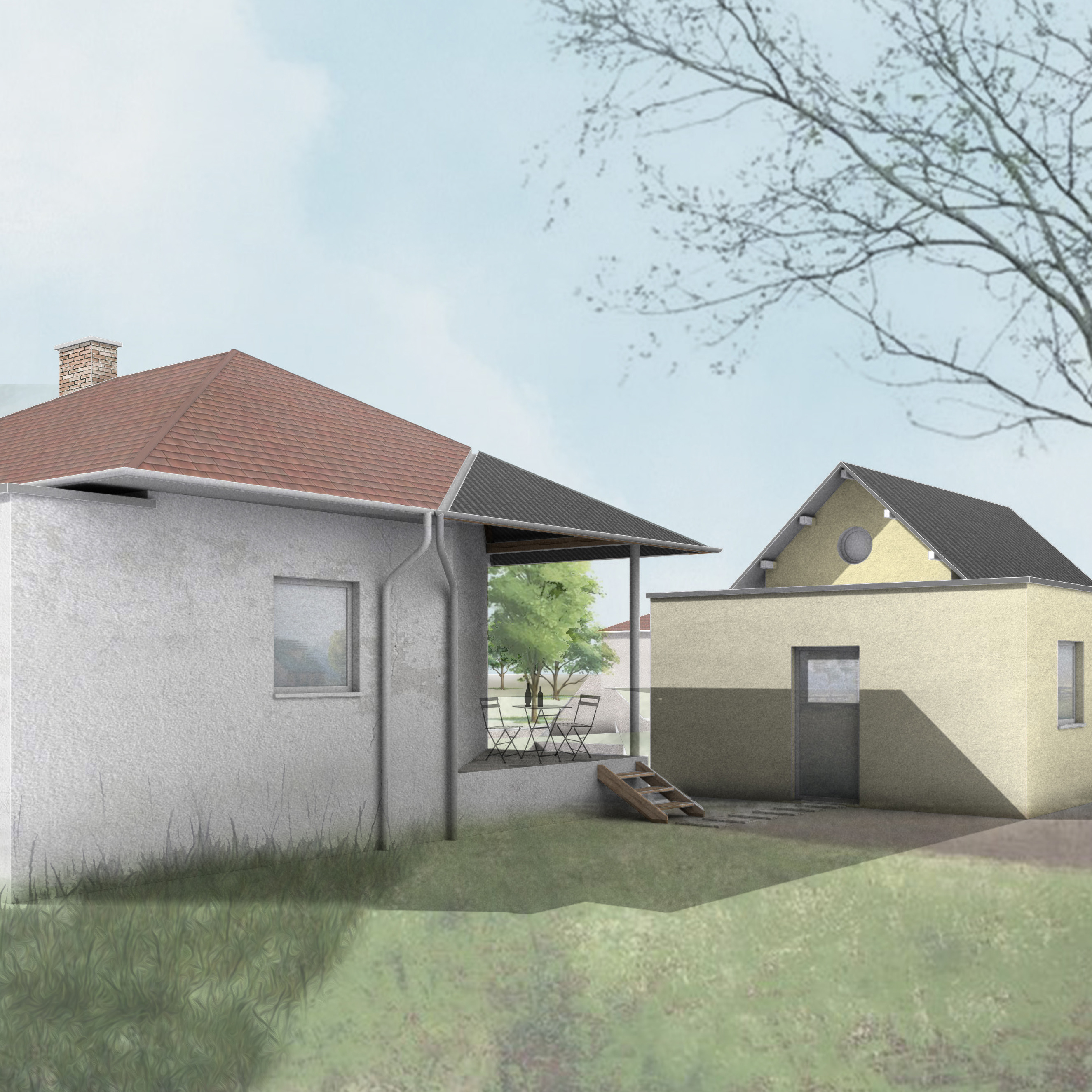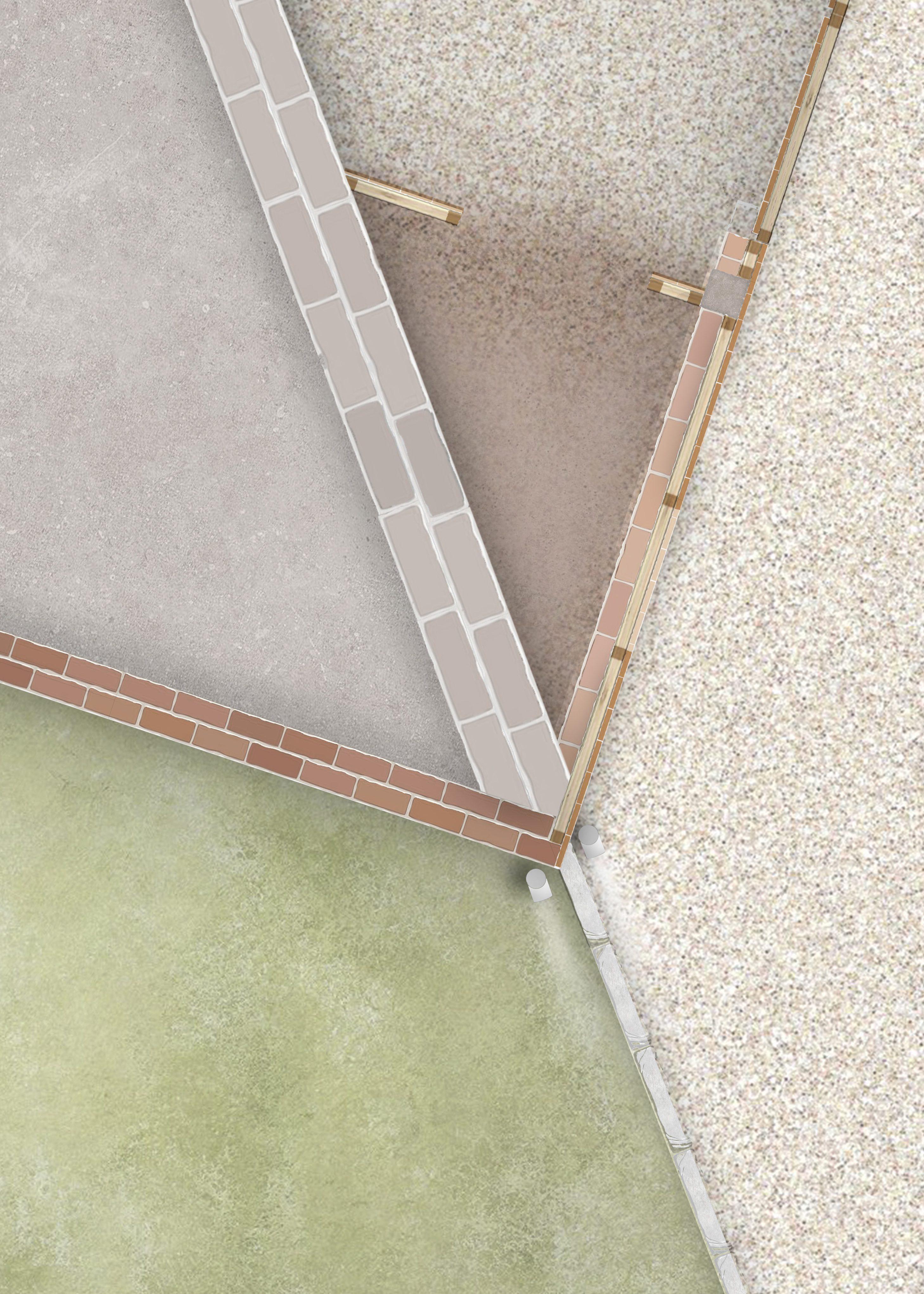 Was würde in einer Siedlung passieren, in der die Linie nicht an die bestehende Struktur angepasst ist, sondern rücksichtslos alles auf ihrem Weg durchschneidet, unter der Annahme, dass beide Seiten strikt unabhängig voneinander existieren, funktionieren und agieren? Wenn ich genauer darüber nachdenke, werden sogar die Häuser zu Opfern dieser Linie... Dennoch sollte ein solches Haus, obwohl es von der Linie betroffen ist, seine Qualität bewahren. Aber wie?