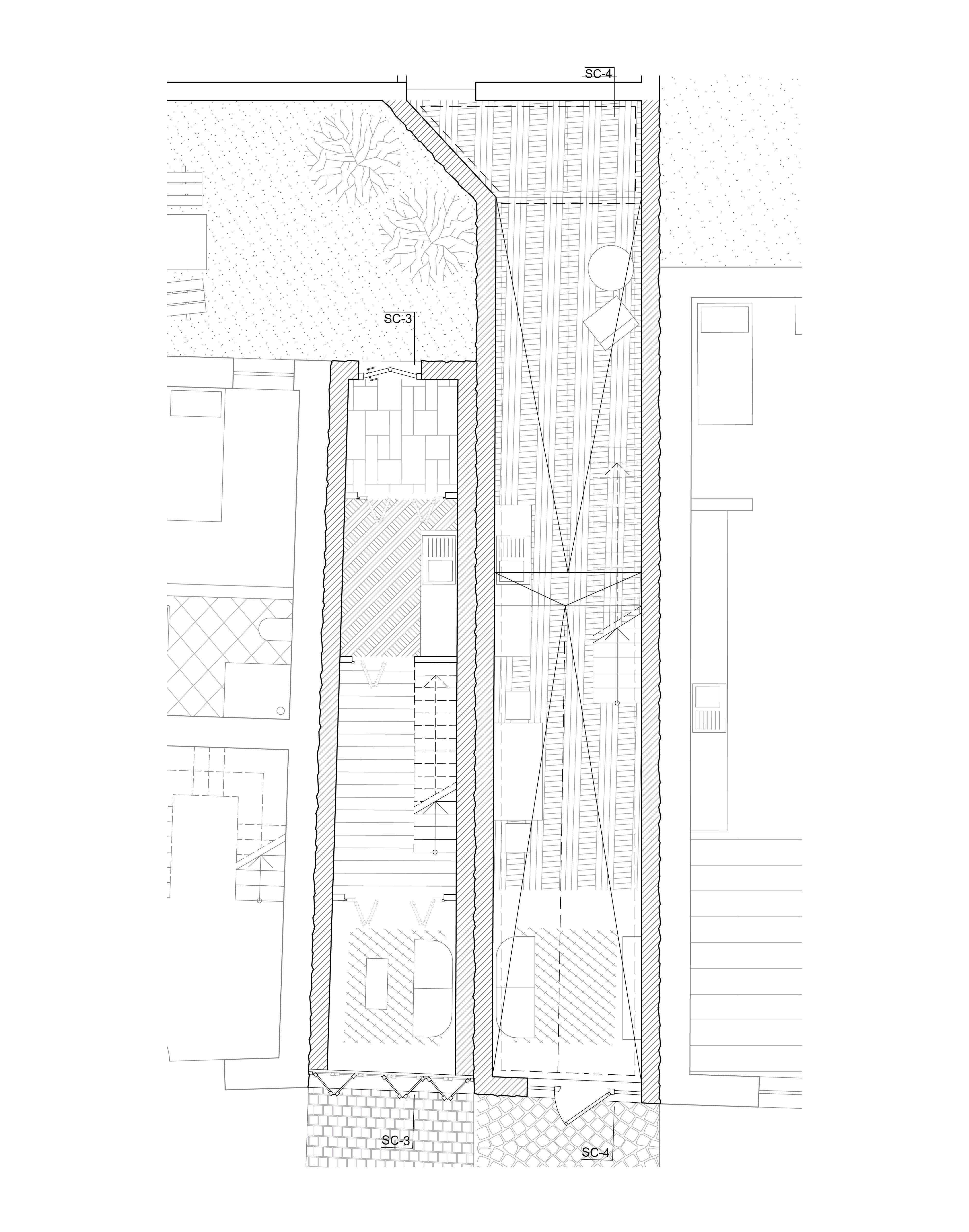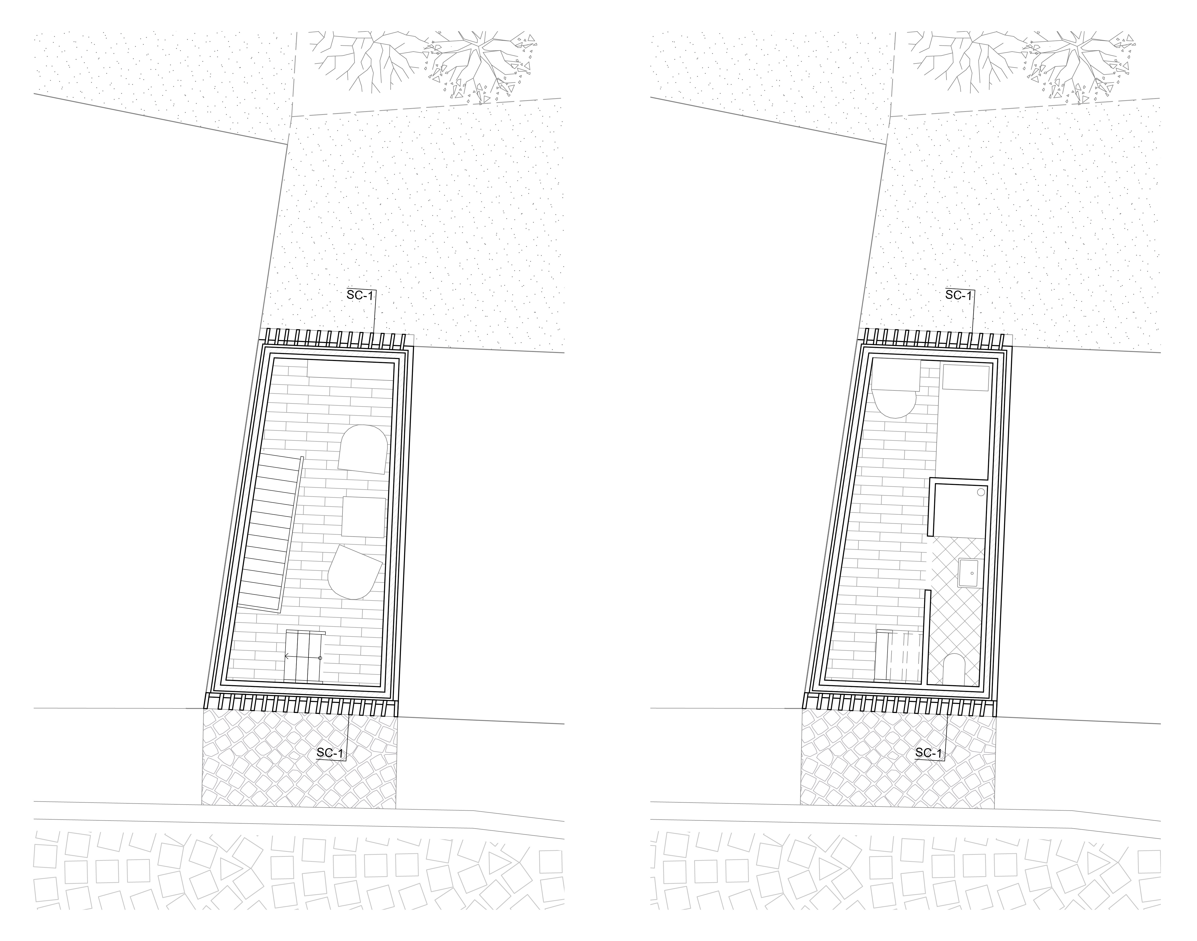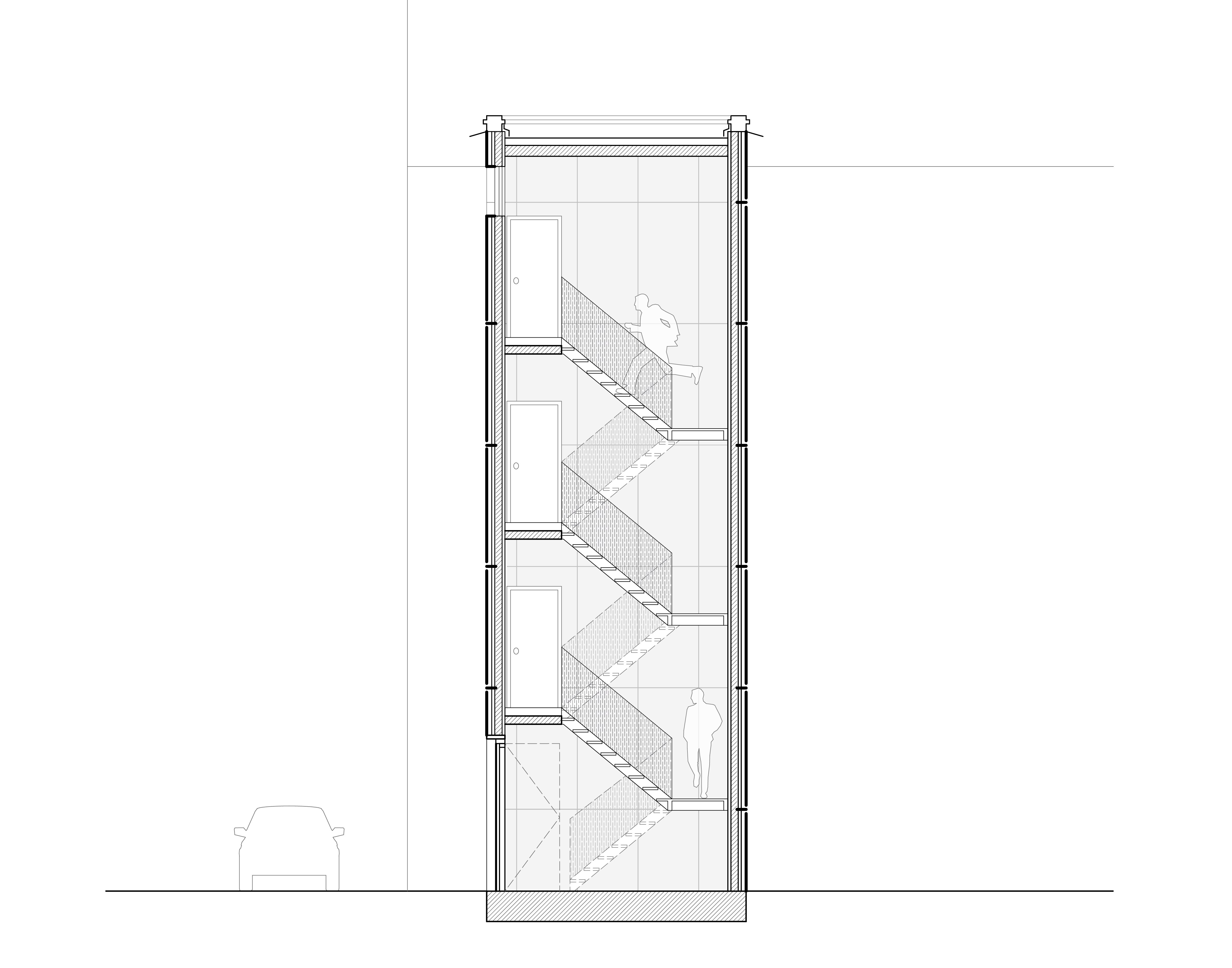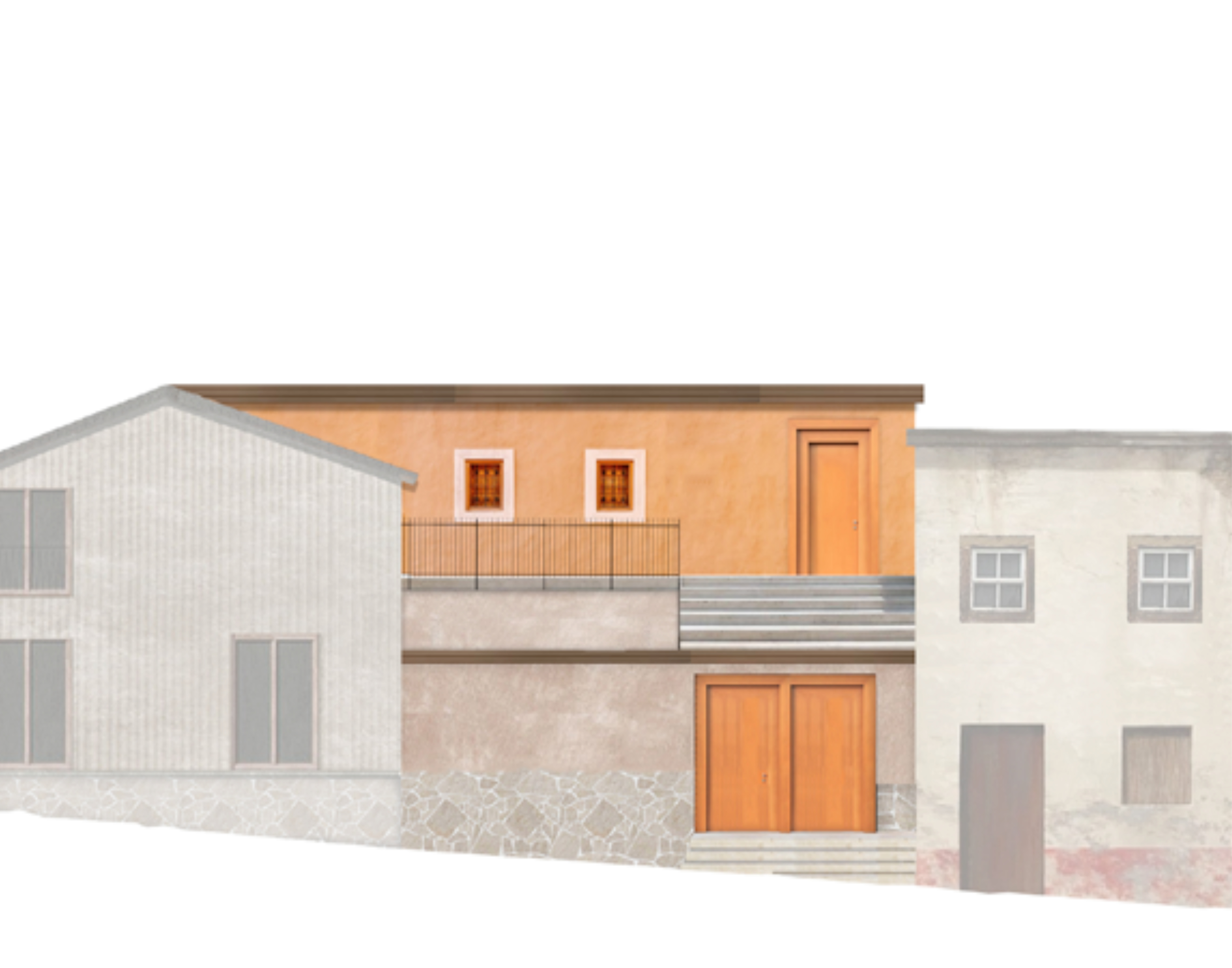 Das erste Tor dient als Ausdruck des entstehenden Gebäudes und bildet zugleich eine eigenständige architektonische Identität, die eine gestalterische Verbindung zwischen Bestand und neuer Struktur schafft. Um eine gestalterische Verbindung zu schaffen, sind die vertikalen Linien des Tores übernommen und weitergeführt, die zwei oberen Öffnungen des Tores in Fenster umgewandelt, sodass sie nicht nur ästhetisch, sondern auch funktional in das Gesamtkonzept integriert werden. Mit dem Ziel, diese Torstruktur nicht nur als Eingangselement zu betrachten, sondern als Ausgangspunkt für die Entwicklung einer neuen Fassade. Dabei wird die Fassade des neuen Gebäudes aus der vorderen Ansicht des Tores heraus entwickelt.