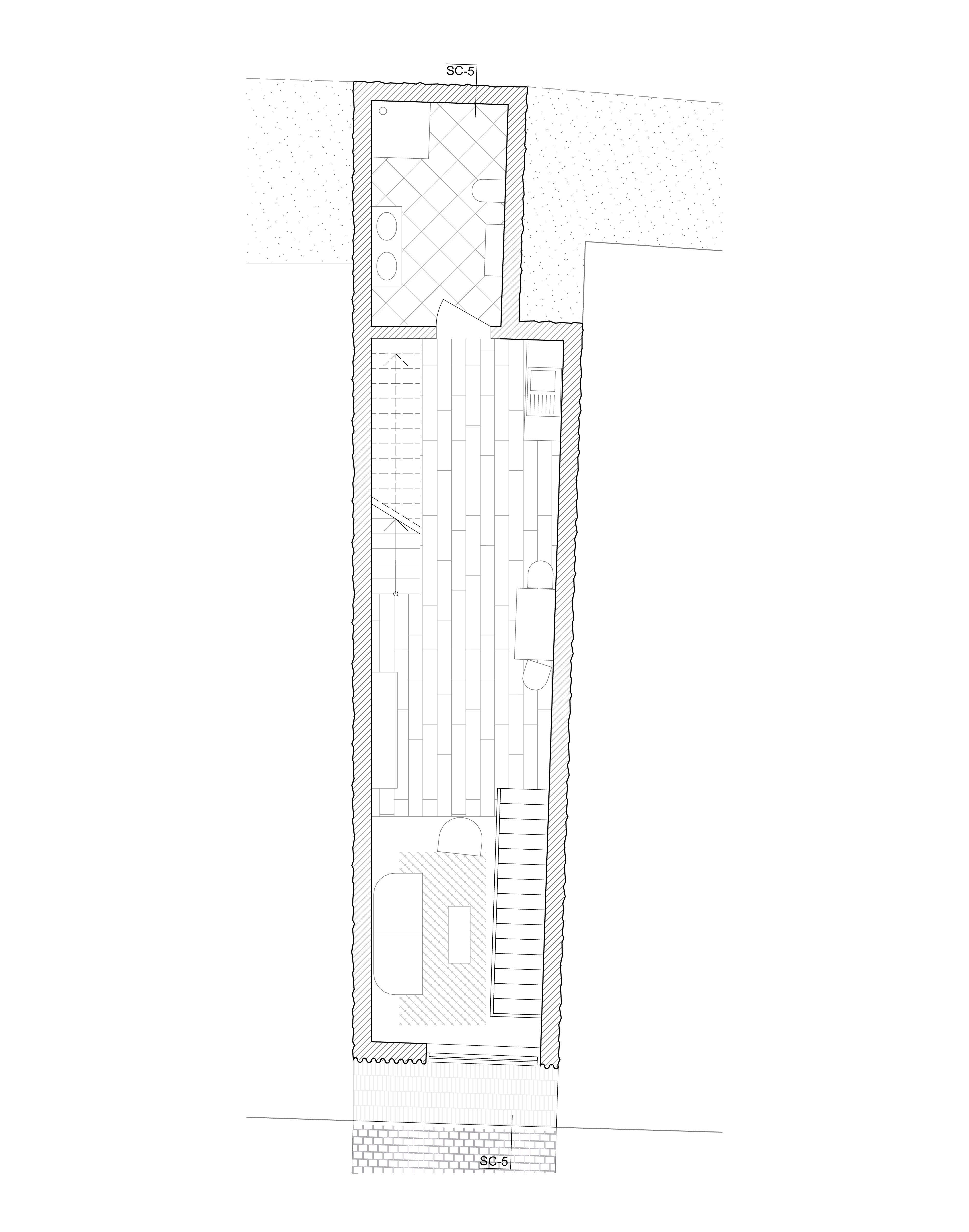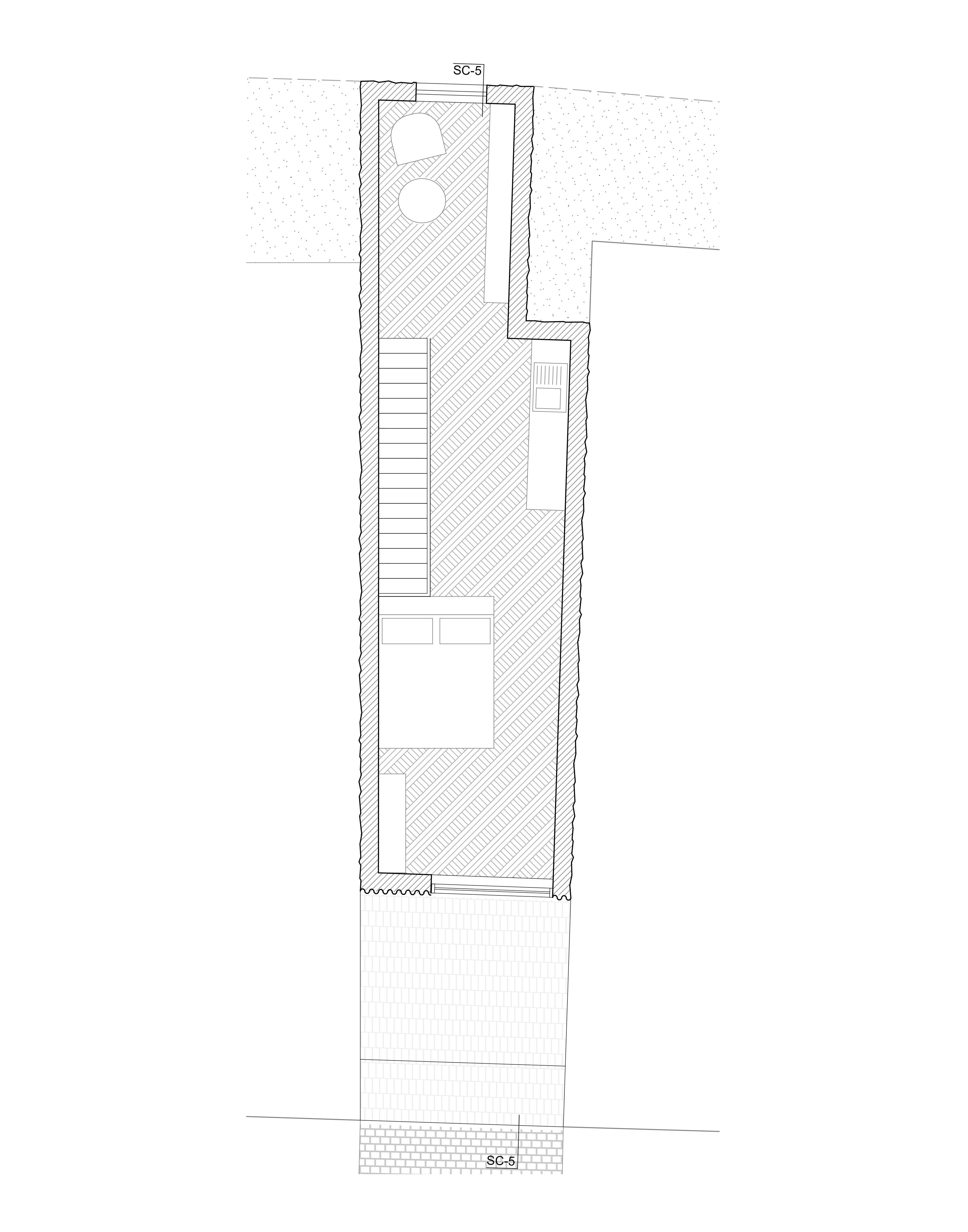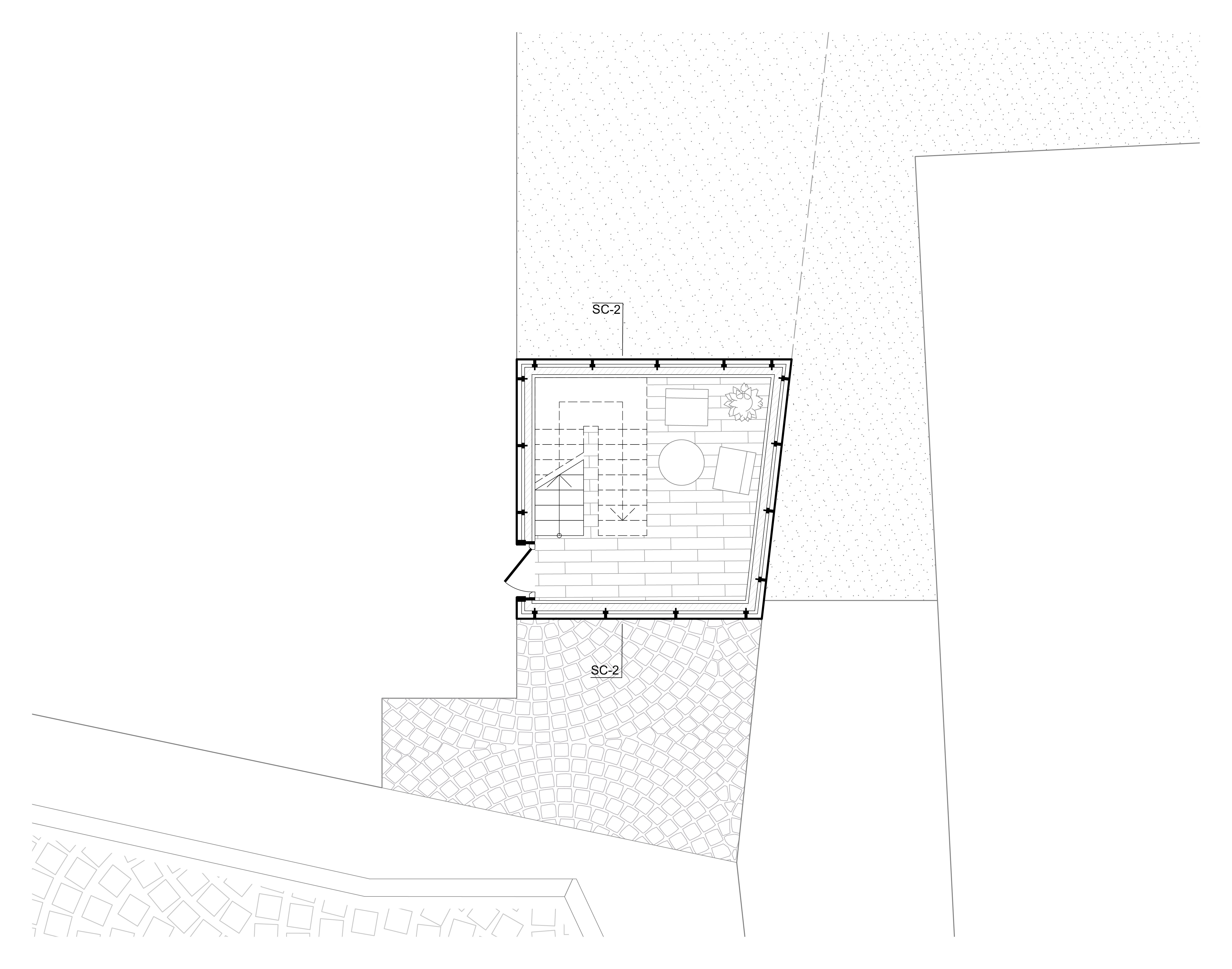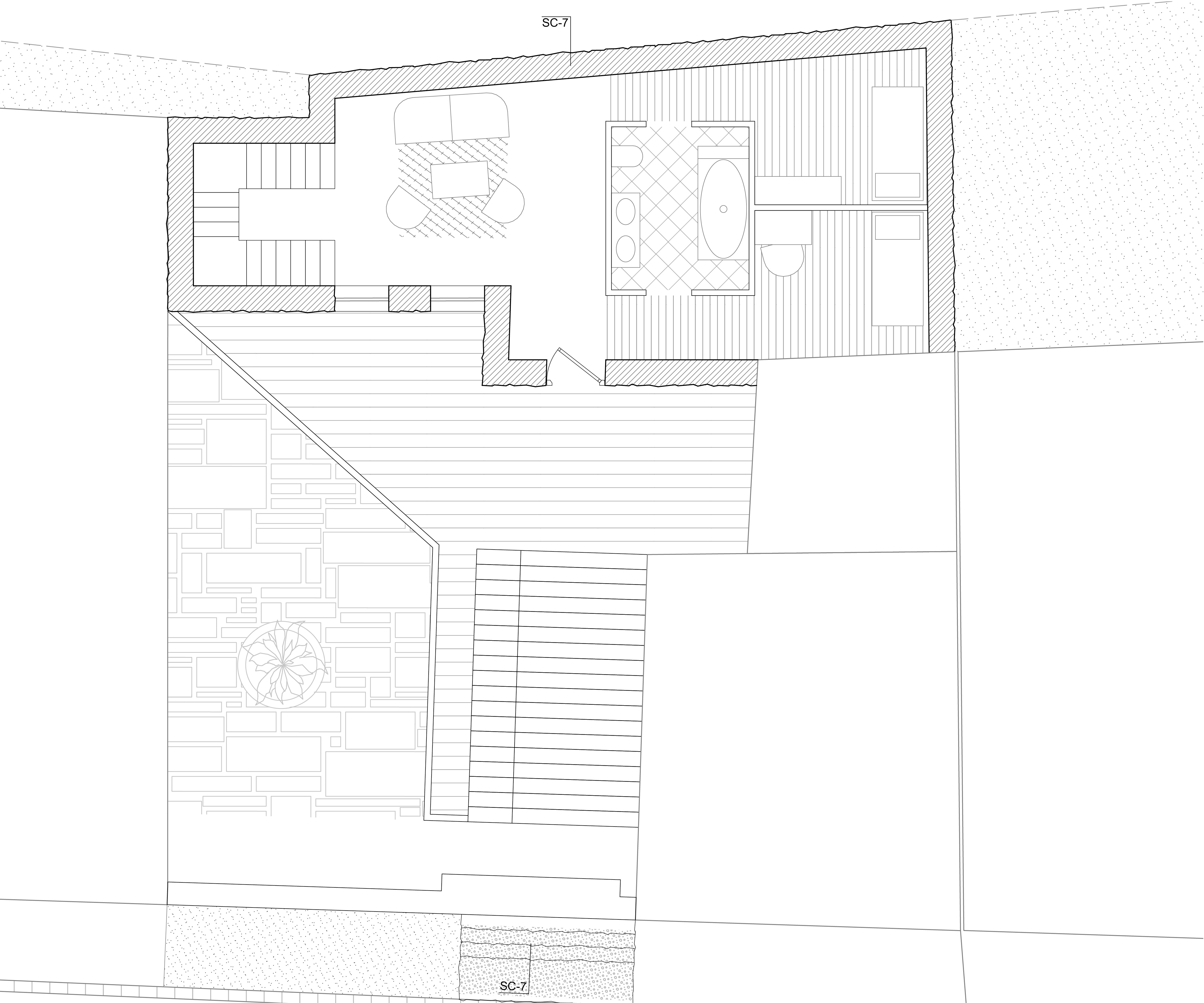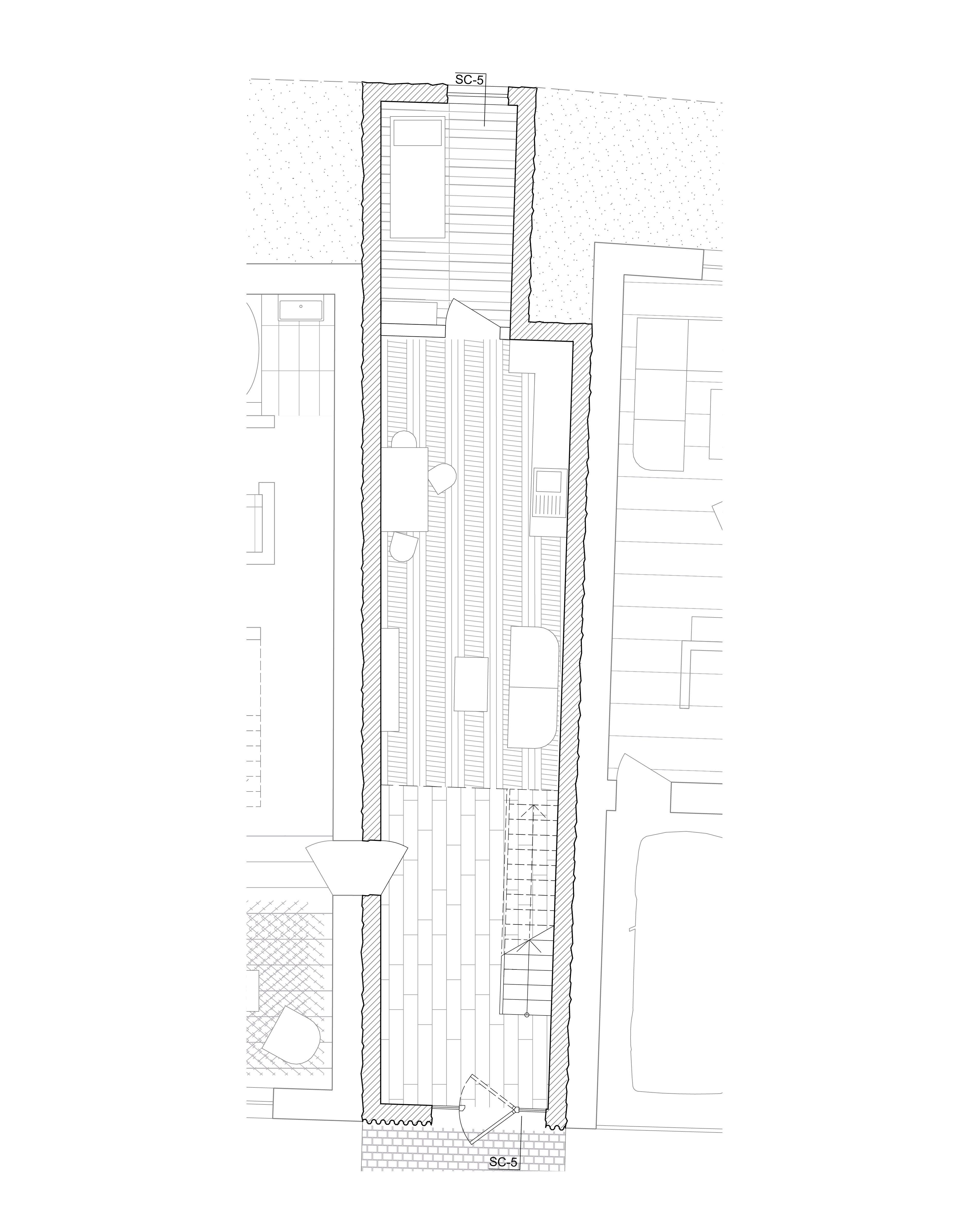 Das sechste Tor, im Gegensatz zu den anderen Toren, die durch ihre vertikale Ausdehnung auffallen, bleibt dieses Tor eingeschossig und folgt einer klar horizontalen Linie. Es ist ein schlichtes Element, das wie ein Rahmen wirkt. Dieser Rahmen zieht sich nur im Grundriss weiter und definiert so den Raum. Das Tor ist so entstanden, das es in Ansicht, zwei benachbarten Häuser verbindet. Beide Gebäude „spüren“ das Tor, es zieht sich durch beide Häuser hindurch. In seiner Gestaltung ist das sechste Tor also ein Statement der Einfachheit und Kontinuität, das den Fokus auf den horizontalen Zusammenhang legt und die beiden Gebäude in ihrer Gesamtheit verbindet.