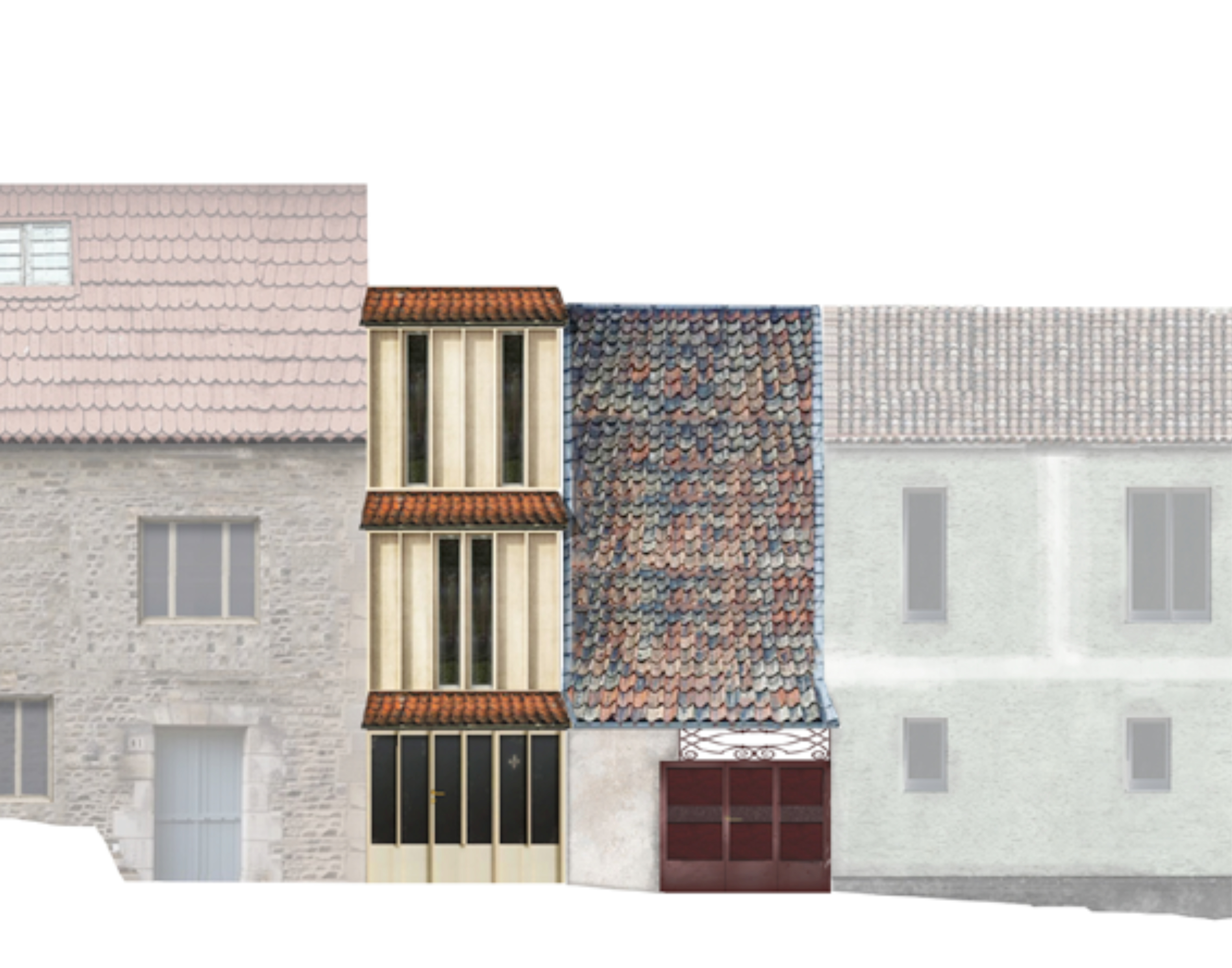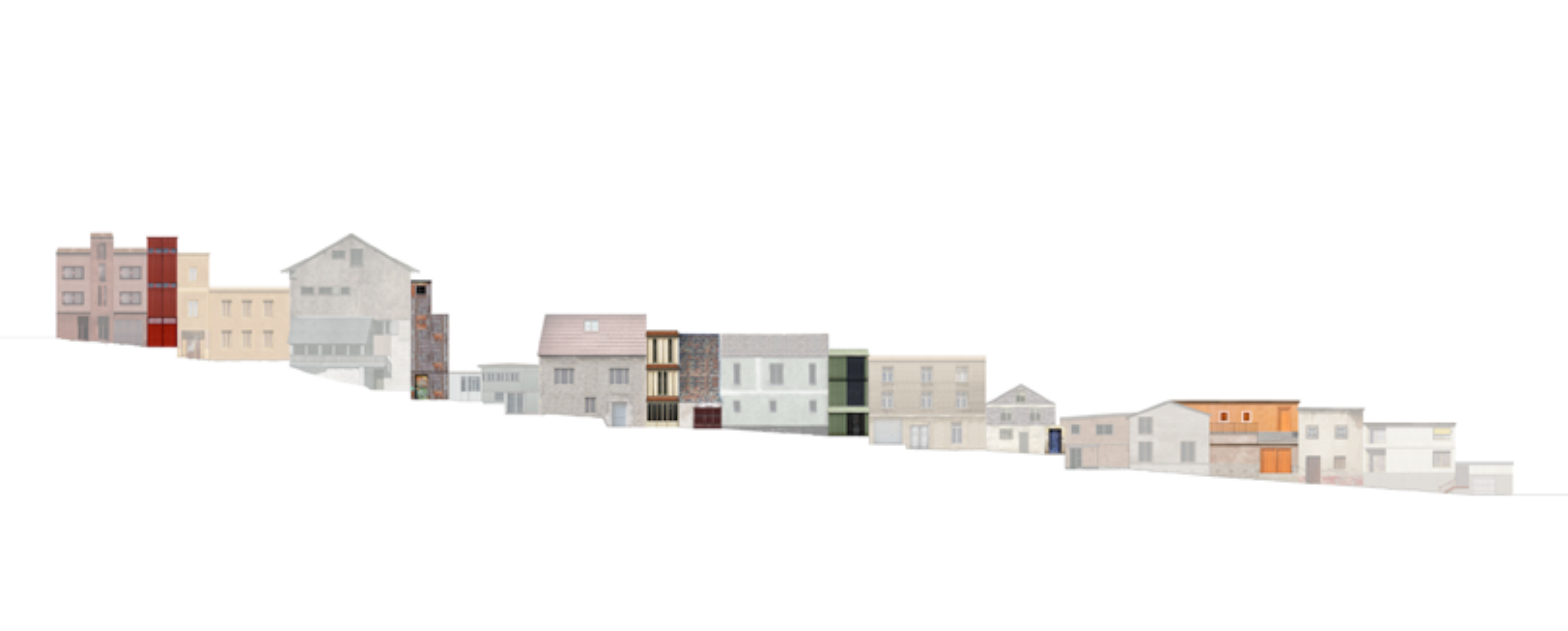 Jedes neue Element übernimmt die Charakteristika der Tore, des Zwischenraums und der benachbarten Gebäude und interpretiert sie auf individuelle Weise, wodurch eine klare Fortsetzung der Struktur entsteht, ohne dabei die Identität des Ortes zu verlieren. Dieser Ansatz führt zu einer Neubewertung der Straße. Für die Anwohner bleibt die vertraute Atmosphäre erhalten, während die neuen Gebäude gleichzeitig eine Bereicherung darstellen. So entsteht eine Architektur, in der selbst kleinste strukturelle Elemente wie Tore als konzeptionelle Basis dienen können.
