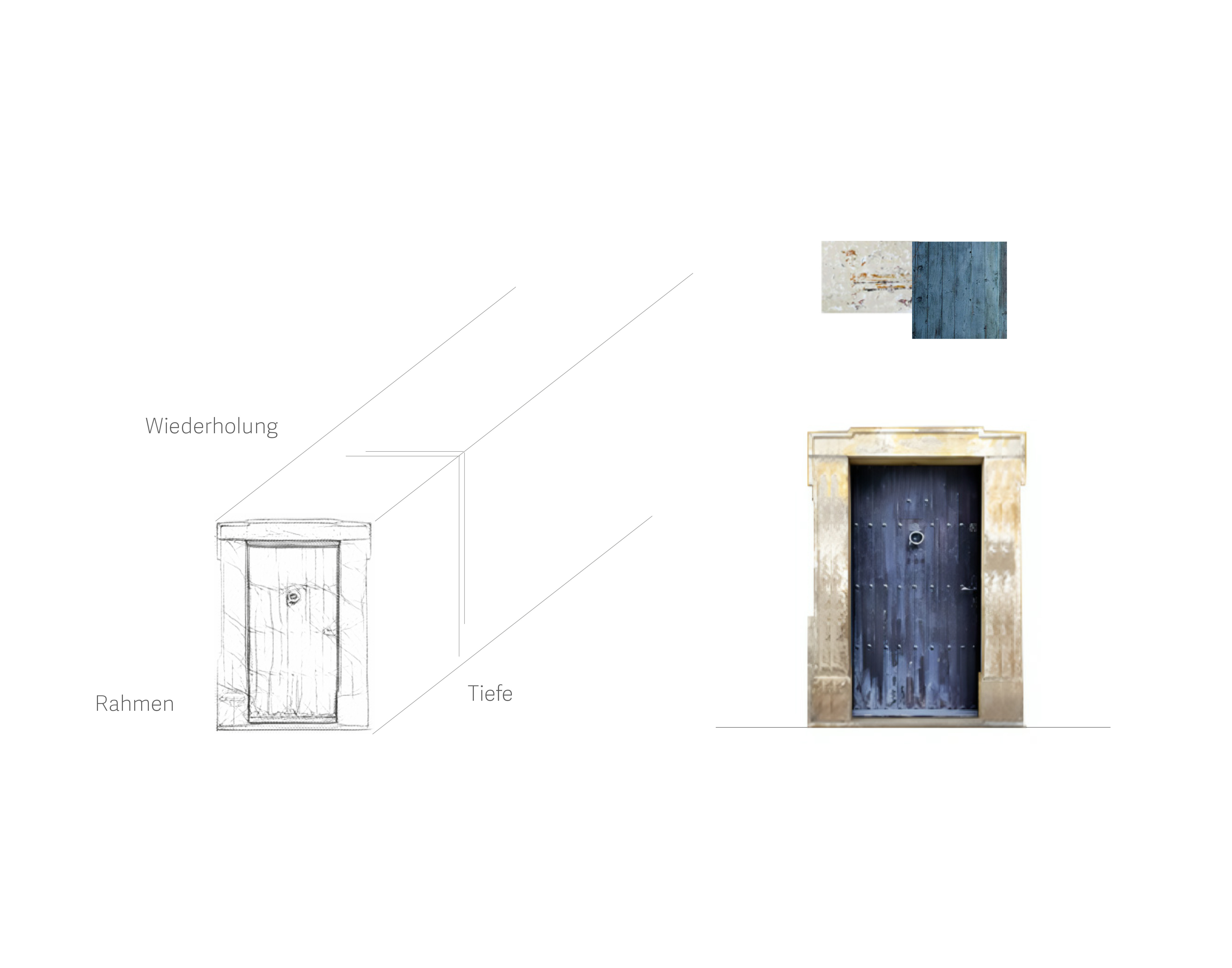 Ein Rahmen, der den Blick lenkt, klar und rein, das Tor zieht sich durch zwei Räume hinein. Ein Band, das Verbindung schafft, die Häuser, die es sanft umfasst.