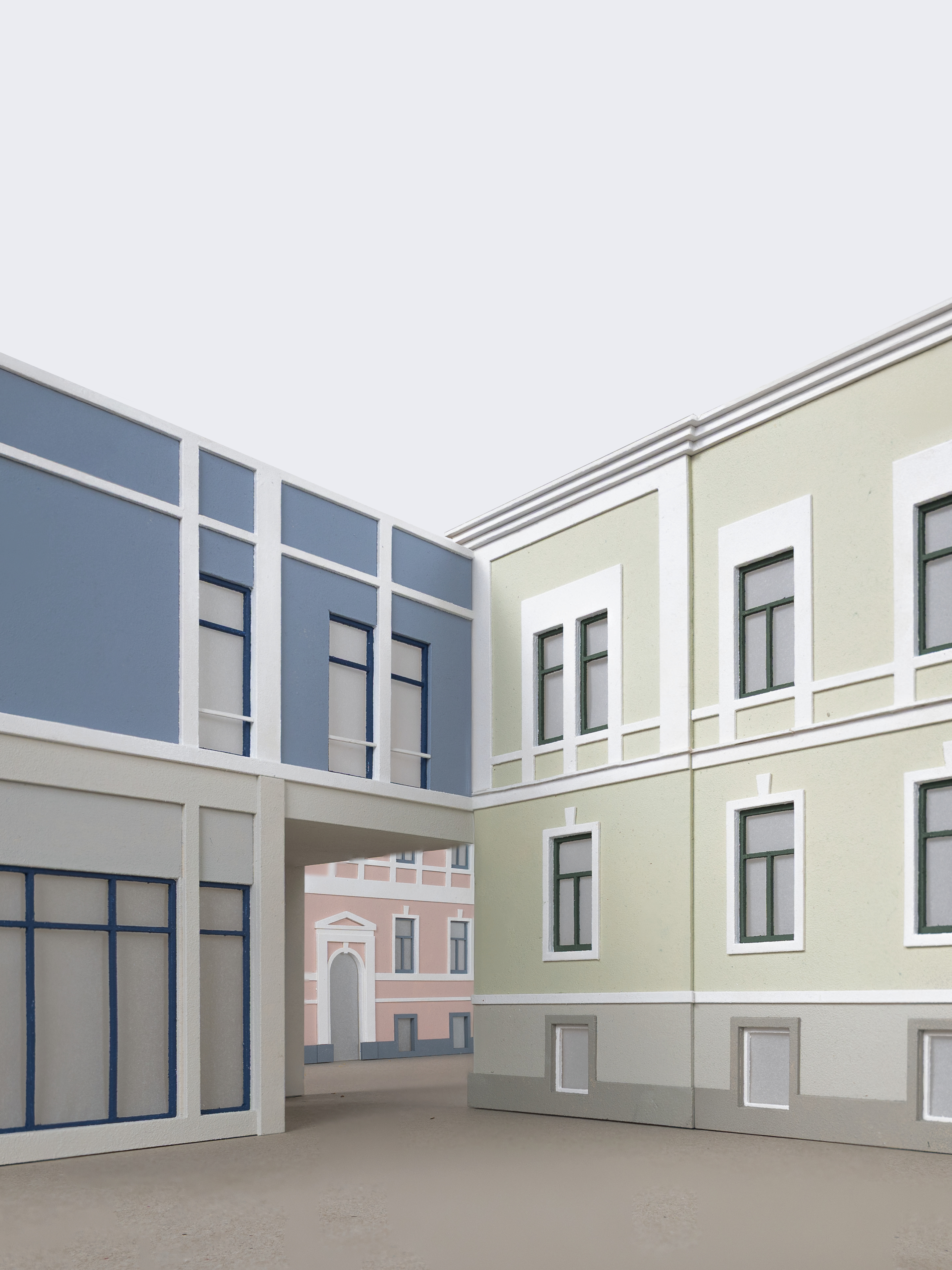 Das Zwischenhaus setzt sich selbstbewusst in die Mitte, bildet das neue Zentrum des Ensembles. Die Nischen bekommen eine neue Haut.