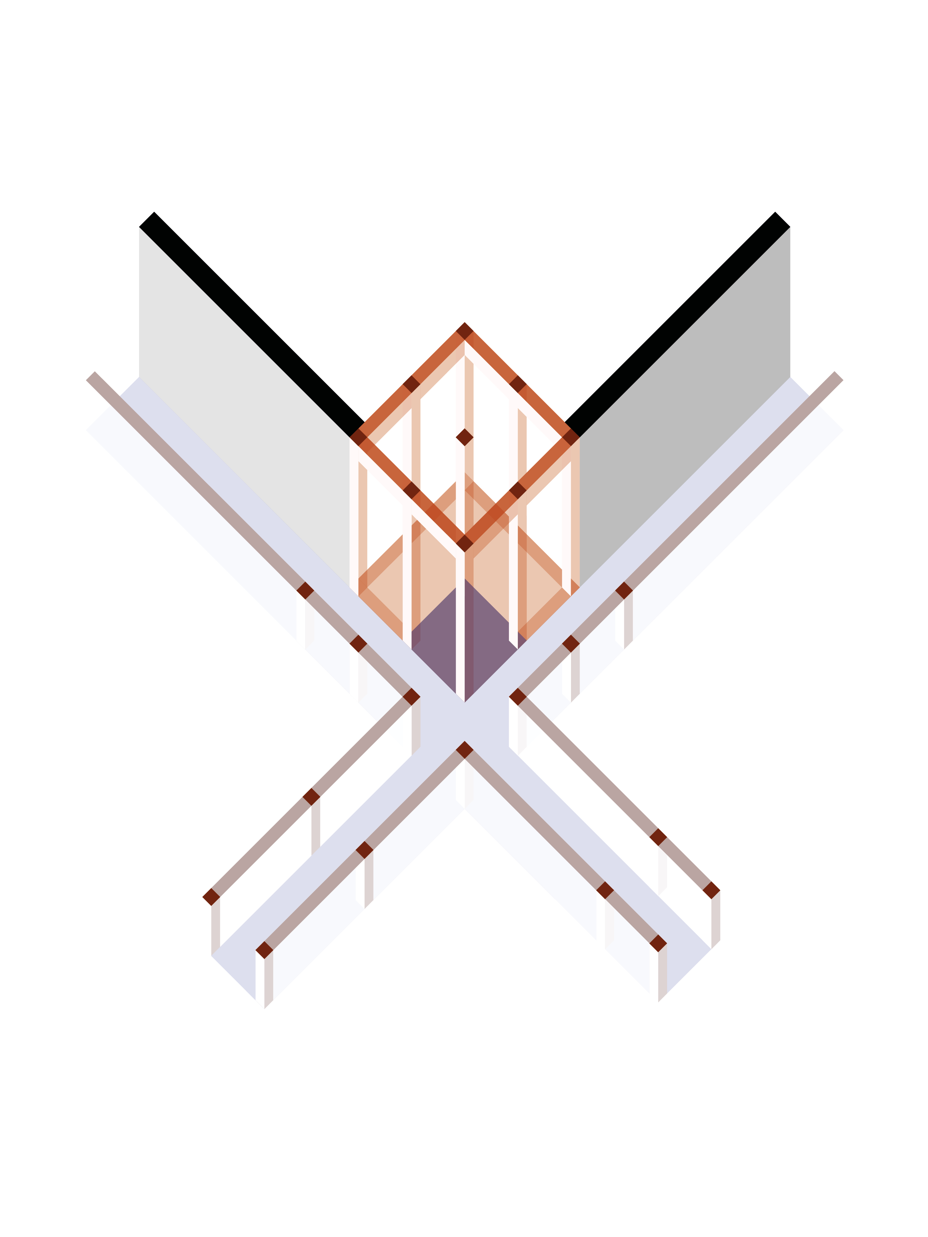 Als Erschließung dienen die verschränkten Ecken.