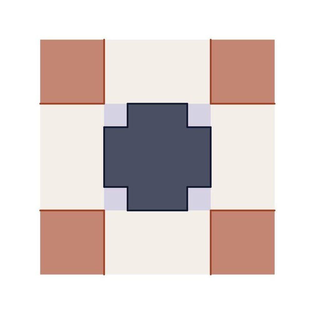 Jedes Eck bleibt offen - zum Durchschreiten oder zum Betreten. Die vier Seiten sind gleichwertig, so auch die vier Ecken mit ihren vier Eingängen.